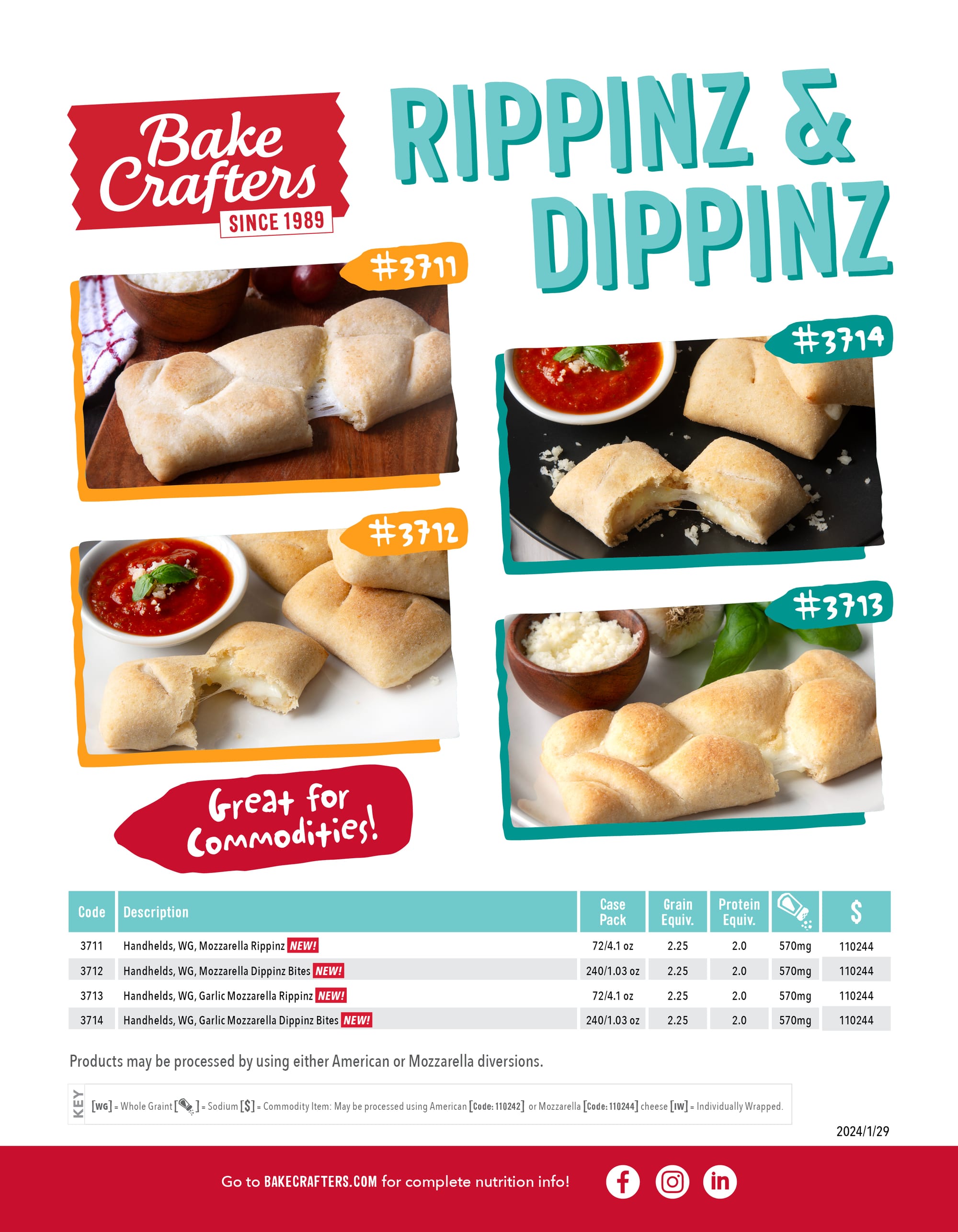 Join the party! Bake Crafters is bringing you the ultimate cheese experience with our new Rippinz & Dippinz! Full of melted mozzarella, they are both perfect for dipping in your favorite sauces. It's not a stretch – they're sure to be a hit!