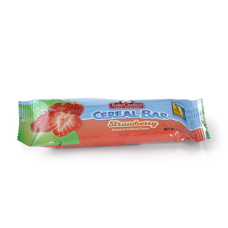 Bake Crafters INACTIVE - Cereal Bars, WG, Strawberry, IW; must be whole grain rich and provide 1.0 ounce grain equivalent. Portion to provide at least 95 calories, with no more than 3.5 grams of fat. Must contain less than 180 milligrams of sodium. Acceptable brand: Bake Crafters 1288.