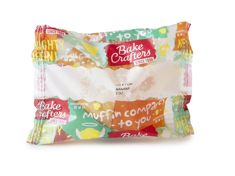 Bake Crafters INACTIVE - Muffins, Banana, Low Fat, IW; must provide 1.25 ounce grain equivalents. Portion to provide at least 105 calories, with no more than 2.5 grams of fat. Must contain less than 280 milligrams of sodium. Acceptable brand: Bake Crafters 1361.