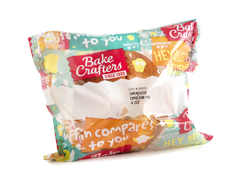Bake Crafters CLOSEOUT Muffins, WG, Orange Dream, IW; must be whole grain rich and provide 2.0 ounce grain equivalents. Portion to provide at least 305 calories, with no more than 11 grams of fat. Must contain less than 250 milligrams of sodium. Acceptable brand: Bake Crafters 1389.