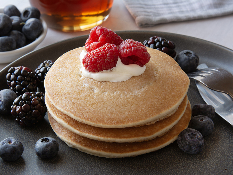 It's always a great day if it starts with pancakes! These delicious, fluffy pancakes are tasty enough to stand on their own, and also delicious when served with maple syrup and fruit topping.