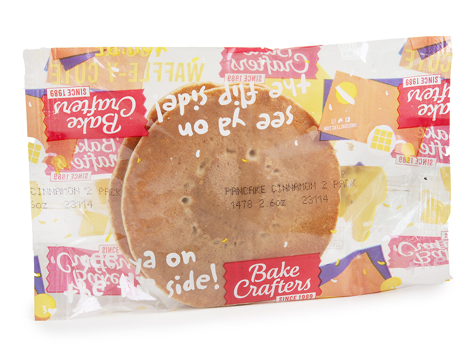 Bake Crafters Pancakes, WG, Wholesome Choice, Buttermilk, Maple Cinn, 2 Pack; must be whole grain rich and provide 2.0 ounce grain equivalents. Portion to provide at least 145 calories, with no more than 4.5 grams of fat. Must contain less than 260 milligrams of sodium. Acceptable brand: Bake Crafters 1478.