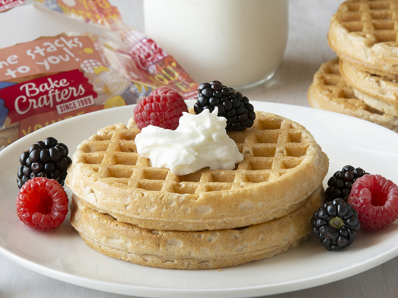 Bake Crafters INACTIVE - Waffles, WG, Wholesome Choice, Cinnamon, 2 Pack; must be whole grain rich and provide 2.0 ounce grain equivalents. Portion to provide at least 145 calories, with no more than 7 grams of fat. Must contain less than 290 milligrams of sodium. Acceptable brand: Bake Crafters 1565.