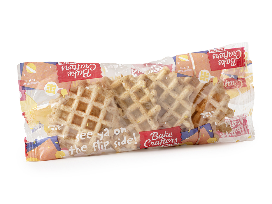 Bake Crafters Waffles, WG, Wholesome Choice, Maple Chip Mini, 3", 4 Pack; must be whole grain rich and provide 2.0 ounce grain equivalents. Portion to provide at least 165 calories, with no more than 7 grams of fat. Must contain less than 250 milligrams of sodium. Acceptable brand: Bake Crafters 1589.