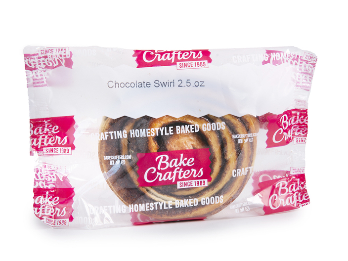 Bake Crafters Chocolate Swirls, WG, IW; must be whole grain rich and provide 2.25 ounce grain equivalents. Portion to provide at least 235 calories, with no more than 11 grams of fat. Must contain less than 190 milligrams of sodium. Acceptable brand: Bake Crafters 1664.