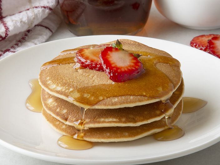 Pancakes! Is there anything better for breakfast? Probably not. And these delicious, fluffy buttermilk pancakes are whole grain and full of maple chips for a perfect breakfast experience.
