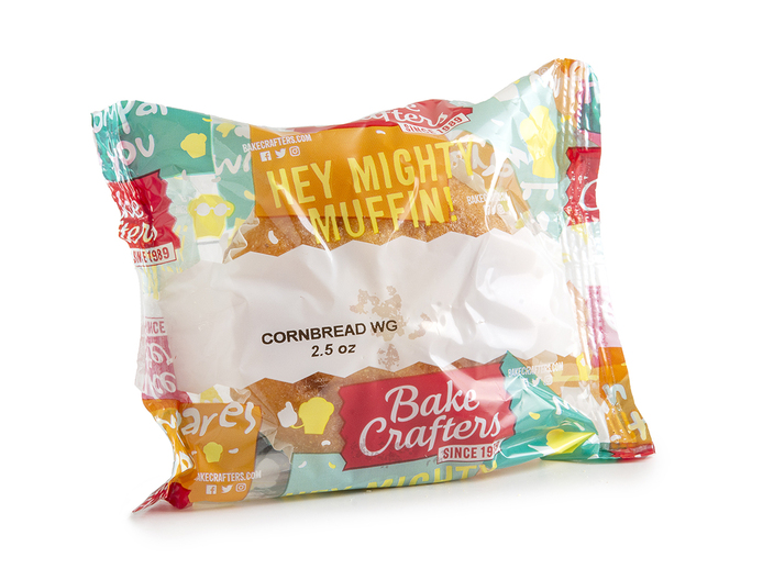Bake Crafters Muffins, WG, Cornbread, IW; must be whole grain rich and provide 2.0 ounce grain equivalents. Portion to provide at least 195 calories, with no more than 9 grams of fat. Must contain less than 165 milligrams of sodium. Acceptable brand: Bake Crafters 2175.