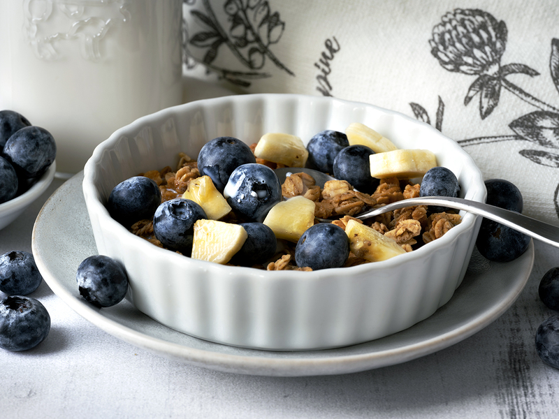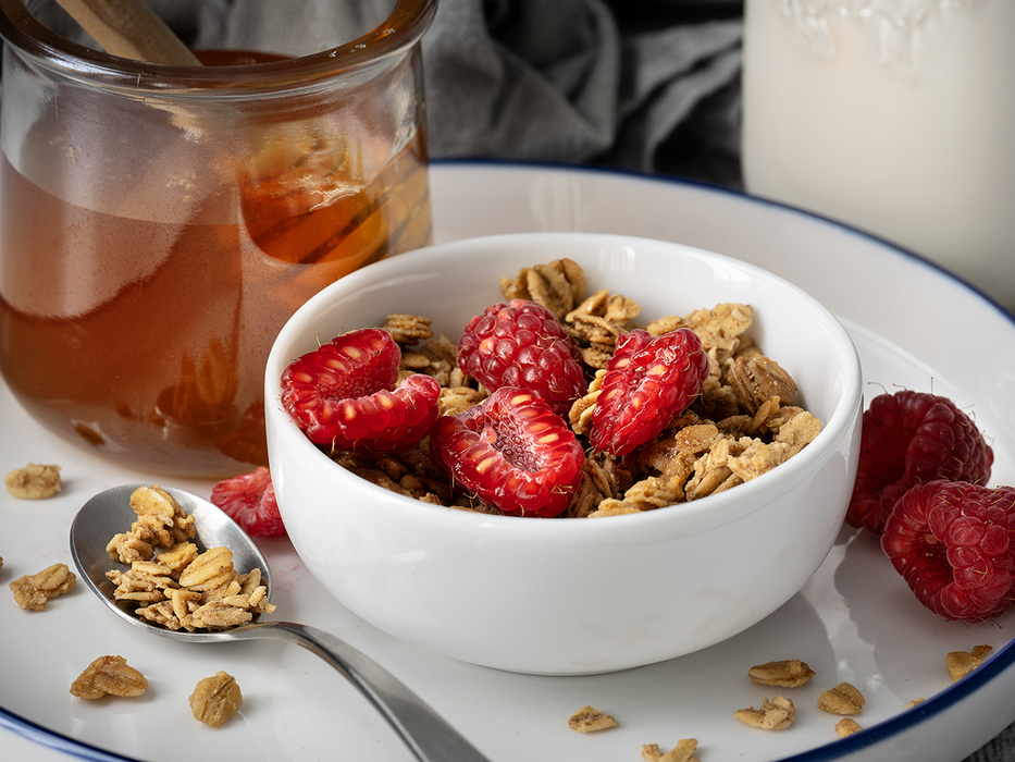 Our vanilla granola is delicious, whole grain, and free from artificial flavors, colors, preservatives and sweeteners. It's perfect as a snack or with a splash of milk!