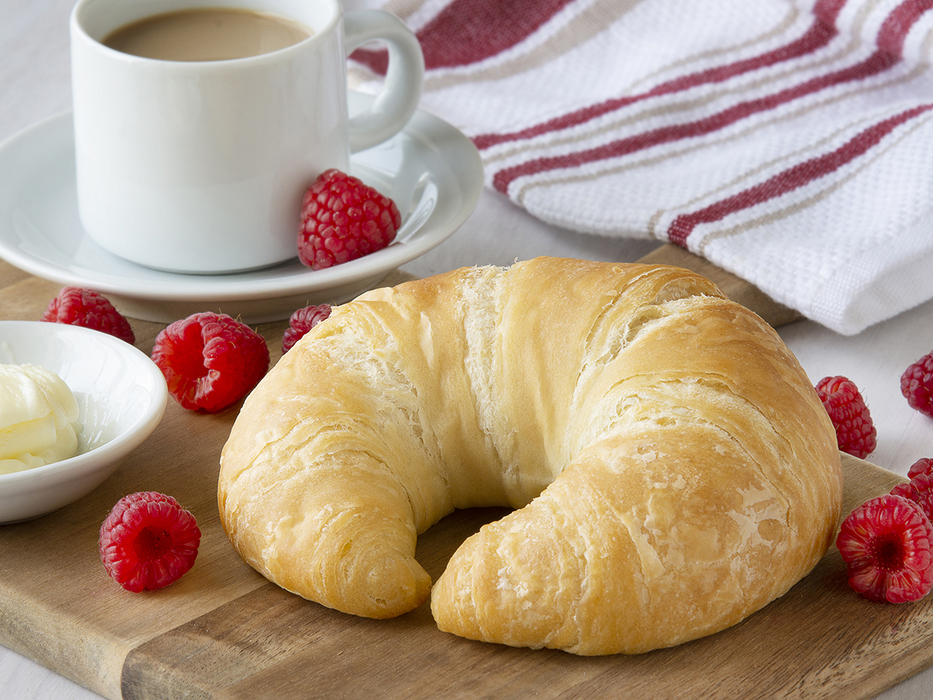 Bake Crafters Croissant, Butter Blend, Round, Unsliced, 3.75 oz.; must provide 3.5 ounce grain equivalents. Portion to provide at least 285 calories, with no more than 11 grams of fat. Must contain less than 850 milligrams of sodium. Acceptable brand: Bake Crafters 3282.