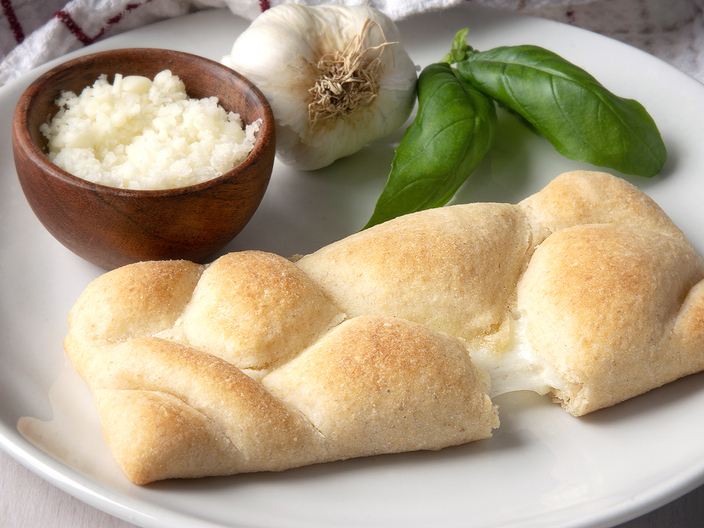 Reduced fat mozzarella cheese (pasteurized part skim milk, nonfat milk, modified food starch, cultures, salt, vitamin A palmitate, enzymes), Whole grain whole wheat flour, water, Enriched flour (Wheat flour, Malted barley flour, Niacin, Iron, Thiamine mononitrate, Riboflavin, Folic acid), Soybean Oil, Yeast, Sugar, Dehydrated garlic, Salt.