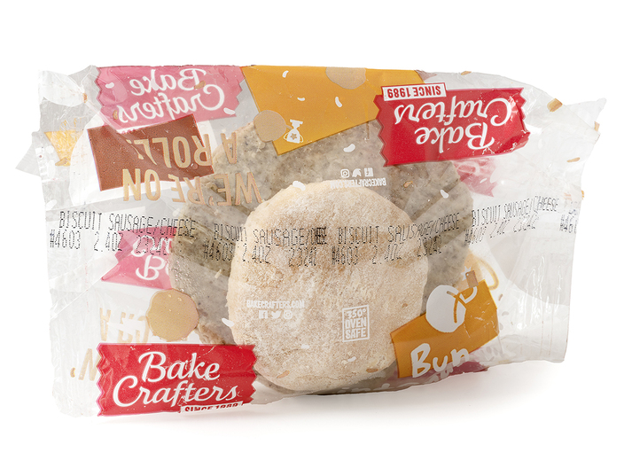Bake Crafters Sandwich, Biscuit, Honey WG, Chicken Sausage, Cheese, IW; must be whole grain rich and provide 1.0 ounce grain equivalent and 1.25 ounces of meat or meat alternate. Portion to provide at least 135 calories, with no more than 9 grams of fat. Must contain less than 410 milligrams of sodium. Acceptable brand: Bake Crafters 4603.