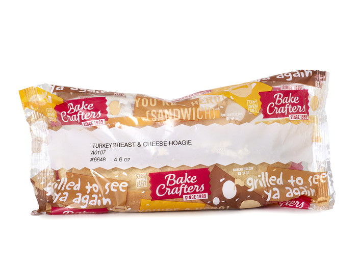 Bake Crafters INACTIVE - Sandwich, Hoagie, WG, Turkey Breast & Cheese, IW; must be whole grain rich and provide 2.0 ounce grain equivalents and 2.0 ounces of meat or meat alternate. Portion to provide at least 265 calories, with no more than 11 grams of fat. Must contain less than 780 milligrams of sodium. Acceptable brand: Bake Crafters 6648.