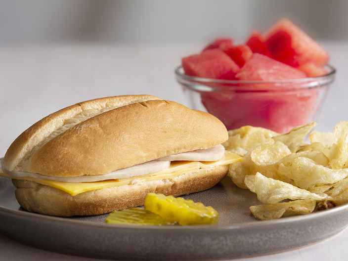 This turkey and cheese hoagie is one of our most popular sandwiches! It's delicious enough to eat when thawed, or if you prefer your sandwiches hot, it's packaged in an oven-safe film for your convenience.