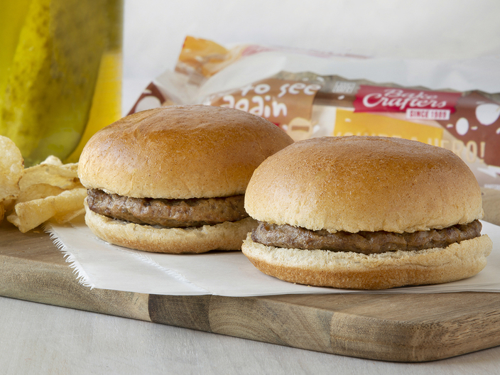 Bake Crafters INACTIVE - Sandwich, Slider, WG, 100% Beef Hamburger, 2 Pack; must be whole grain rich and provide 2.0 ounce grain equivalents and 2.0 ounces of meat or meat alternate. Portion to provide at least 255 calories, with no more than 11 grams of fat. Must contain less than 520 milligrams of sodium. Acceptable brand: Bake Crafters 6691.