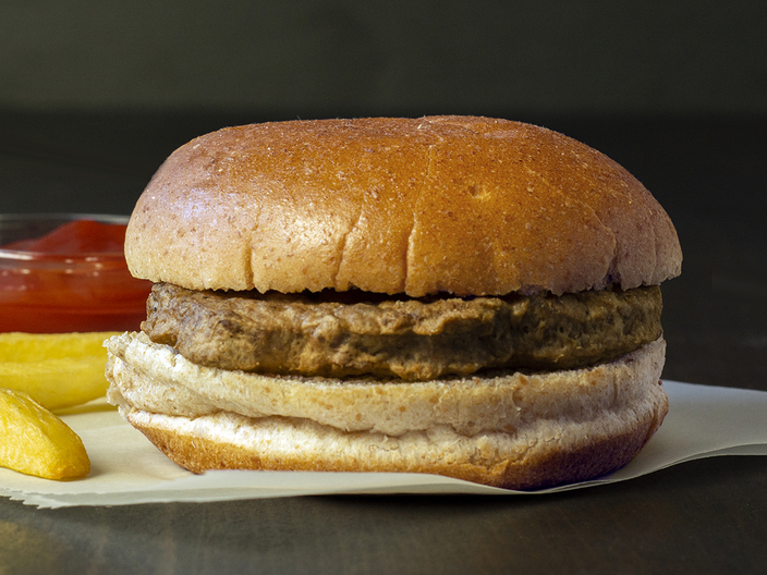 Bun: Whole Wheat Flour, Enriched Wheat Flour (Wheat Flour, Thiamine Mononitrate, Niacin, Reduced Iron, Riboflavin, Folic Acid, Malted Barley Flour), Water, Sugar, Soybean Oil, Contains 2% or less of: Ascorbic Acid, Calcium Propionate, Calcium Sulfate, Ammonium Sulfate, Enzymes, Monocalcium Phosphate, Salt, Soy Lecithin (emulsifier), Wheat Gluten, Yeast. Burger: Ground Beef (Not More Than 20% Fat), Water, Seasoning (Dextrose, Maltodextrin, Corn Starch, Salt, Grill Flavor [From Sunflower Oil], Citric Acid), Salt, Caramel Color.