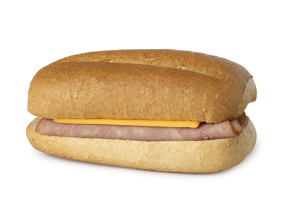 This delicious hoagie sandwich provides 2 grain equivalents and 1 protein equivalents loaded with turkey ham and American cheese. This product is produced in a nut free facility and is the perfect grab-and-go lunch option. Tasty when thawed and served. or if you prefer it warm, heat and serve! It is packaged in ovenable film.