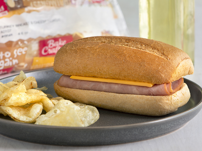 Bake Crafters INACTIVE - Sandwich, Hoagie, WG, Turkey Ham & Cheese, IW, 1 M/MA & 2 GR; must be whole grain rich and provide 2.0 ounce grain equivalents and 1.0 ounce of meat or meat alternate. Portion to provide at least 225 calories, with no more than 10 grams of fat. Must contain less than 720 milligrams of sodium. Acceptable brand: Bake Crafters 6696.