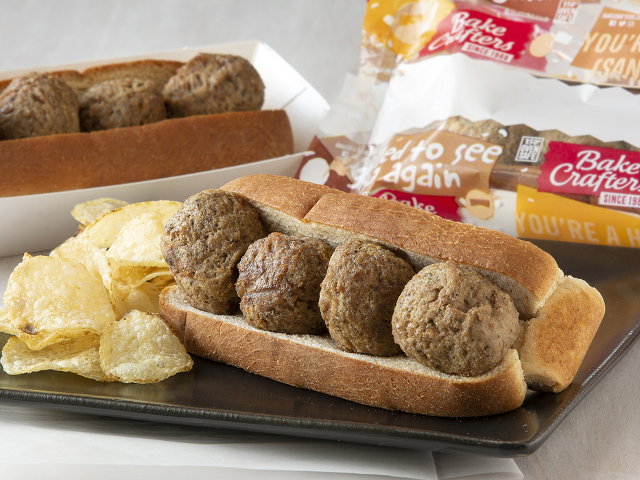 Bake Crafters INACTIVE - Sandwich, WG, Beef Meatball, IW; must be whole grain rich and provide 2.0 ounce grain equivalents and 2.0 ounces of meat or meat alternate. Portion to provide at least 245 calories, with no more than 10 grams of fat. Must contain less than 610 milligrams of sodium. Acceptable brand: Bake Crafters 6708.