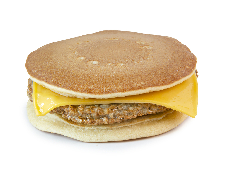 Buttermilk Pancake: Whole Wheat Flour Blend (Whole Wheat Flour, Enriched Wheat Flour [Wheat Flour, Niacin, Reduced Iron, Thiamine Mononitrate, Riboflavin, Folic Acid], Water, Sugar, Buttermilk Solids, Dextrose, Soybean Oil, Egg, Whey Powder. Contains 2% or less of: Baking Powder (Sodium Bicarbonate, Corn Starch, Sodium Acid Pyrophosphate, Mono Calcium Phosphate), Salt, Soy Lecithin. Chicken Sausage: (Chicken, Water, Seasoning [Salt, Spices, Dextrose, Sugar]) Yellow Cheese: (Cultured Skim Milk, Water, Sodium Citrate, Salt, Potassium Citrate, Annatto and Paprika [Color], Cream, Sorbic Acid [Preservative], Enzymes, Soy Lecithin).