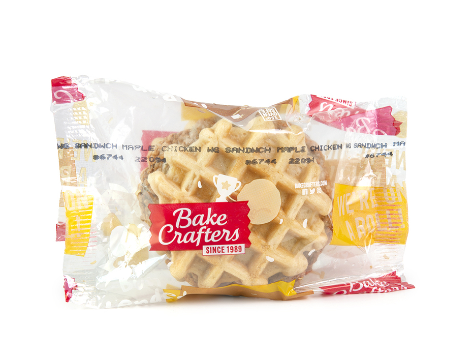 Bake Crafters Sandwich, Maple Waffle, WG, Chicken Sausage & Cheese, IW; must be whole grain rich and provide 1.0 ounce grain equivalent and 1.25 ounces of meat or meat alternate. Portion to provide at least 175 calories, with no more than 12 grams of fat. Must contain less than 530 milligrams of sodium. Acceptable brand: Bake Crafters 6744.