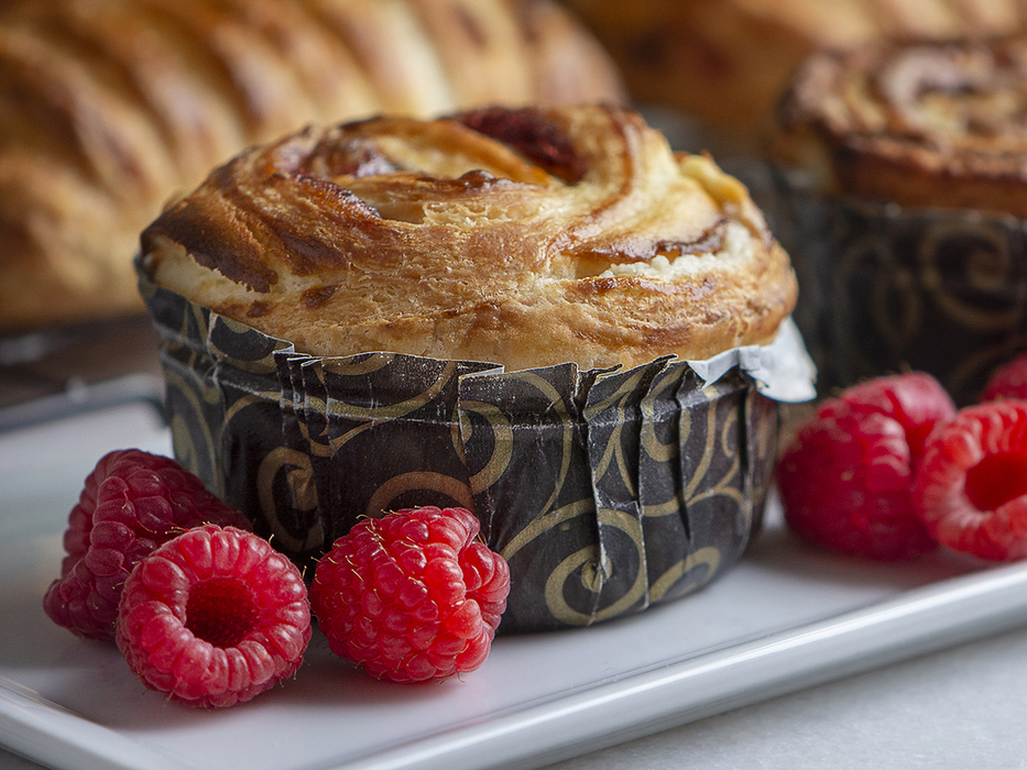 1) Store in freezer at 0⁰F or less 2) Spread pieces on parchment paper 3) DO NOT PROOF 4) Thaw 60 minutes in cup before baking 5) Bake in cup at 350⁰F until DARK golden brown, typically 22-26 minutes 6) Adjust baking times to account for your specific oven Allow product to cool completely