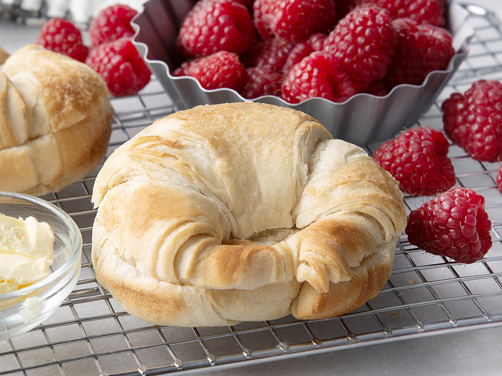Remove sealed container from case, allow to thaw for 1-3 hours at room temperature. Croissants can be served thawed or may be heated in the oven for 3-5 minutes at 350⁰F.
