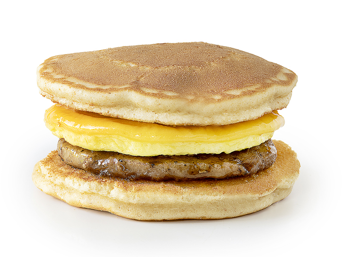 Maple Pancake: Enriched Wheat Flour (Wheat Flour, Niacin, Reduced Iron, Thiamine Mononitrate, Riboflavin, Folic Acid), Water, Maple Chips (Sugar, Wheat Flour, Canola Oil, Yellow Corn Flour, Dextrose, Natural Flavor, Sunflower Lecithin), Sugar, Brown Sugar, Dextrose, Buttermilk Solids, Soybean Oil. Contains 2% or less of: Whey Powder, Egg, Real Maple Sugar, Baking Powder (Sodium Bicarbonate, Corn Starch, Sodium Acid Pyrophosphate, Mono Calcium Phosphate), Natural Maple Flavor, Soy Lecithin, Salt. Chicken & Pork Sausage Patty: Pork, Mechanically Separated Chicken, Water, Soy Protein Concentrate, Contains 2% or less of: Salt, Spices, Dextrose, Natural Flavors, Maltodextrin, BHA, BHT, Pork Stock, Sodium Phosphates, Caramel Color. Scrambled Egg Patty: Whole Eggs, Whey, Soybean Oil, Nonfat Milk, Contains 2% or less of: Modified Food Starch, Salt, Xanthan Gum, Citric Acid, Natural Butter Flavor. Yellow Cheese: Cultured Skim Milk, Water, Sodium Citrate, Salt, Potassium Citrate, Annatto and Paprika (Color), Cream, Enzymes, Vitamin A Palmitate, Sorbic Acid (Preservative), Soy Lecithin.