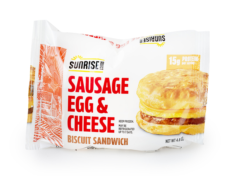 Bake Crafters Sunrise Select, Biscuit Sandwich, Sausage, Egg, & Cheese, IW. Portion to provide at least 345 calories, with no more than 22 grams of fat. Must contain less than 920 milligrams of sodium. Acceptable brand: Bake Crafters 8604.
