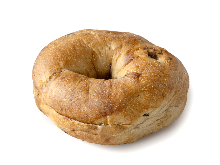 WATER, WHOLE WHEAT FLOUR, ENRICHED WHEAT FLOUR (WHEAT FLOUR, MALTED BARLEY FLOUR, NIACIN, REDUCED IRON, THIAMINE MONONITRATE, RIBOFLAVIN, FOLIC ACID), RAISINS, WHEAT GLUTEN, BAGEL BASE (SUGAR, SALT, DRIED MOLASSES, ENZYMES, ASCORBIC ACID), CONTAINS LESS THAN 2% OF EACH OF THE FOLLOWING: YELLOW CORNMEAL, YEAST, GROUND CINNAMON, CARAMEL COLOR (SULFITES), DOUGH CONDITIONER (MONOGLYCERIDES, GUAR GUM, CORN SYRUP SOLIDS, SILICON DIOXIDE (FLOW AID), SOYBEAN OIL, CALCIUM SULFATE), CALCIUM PROPIONATE.
